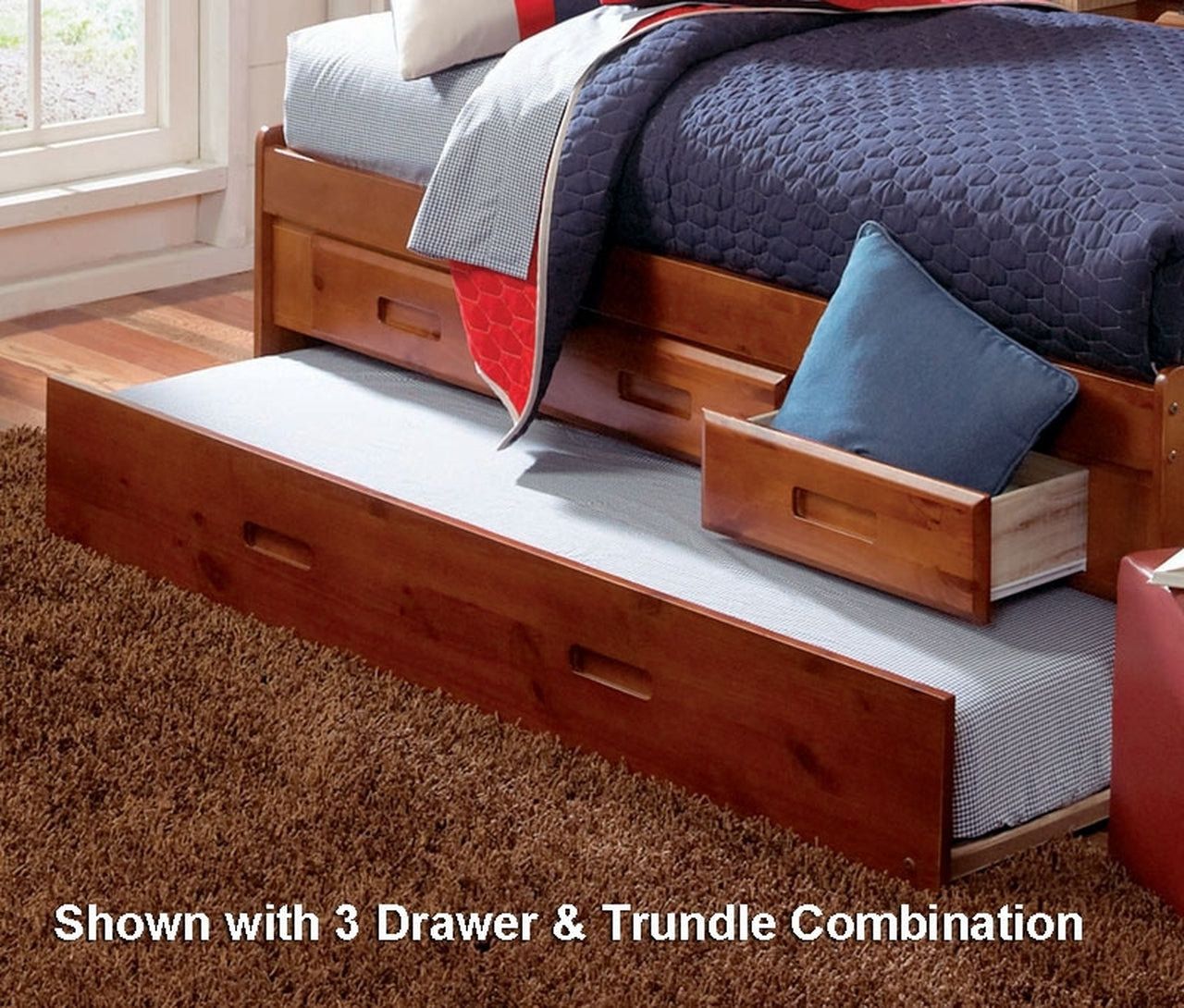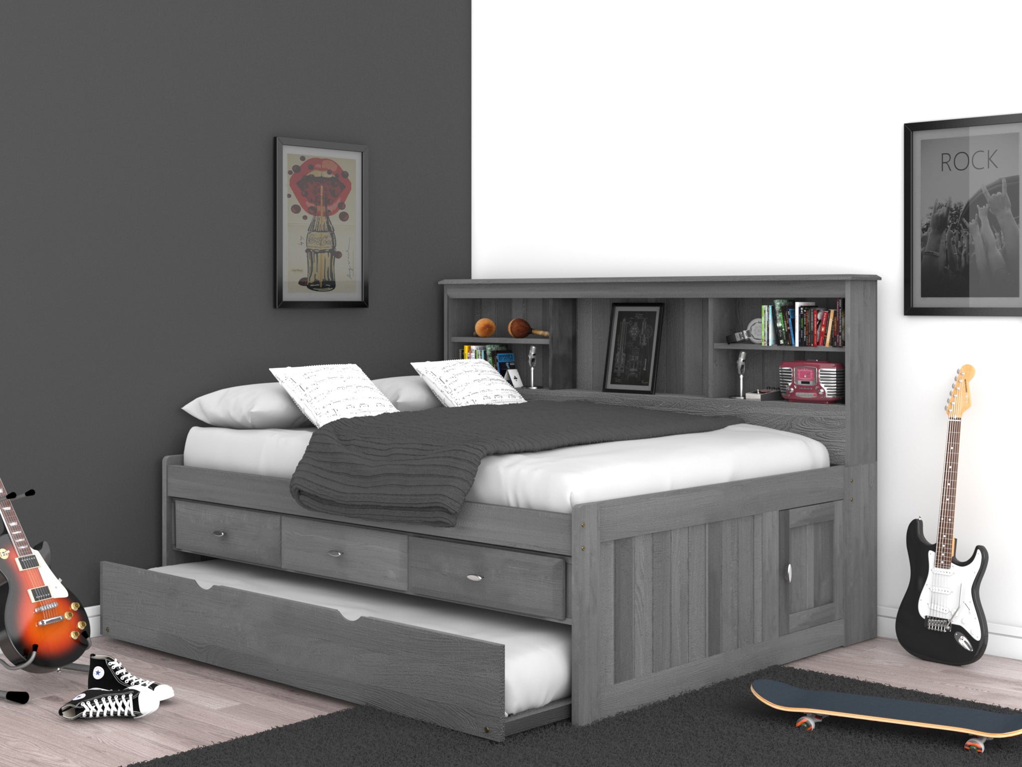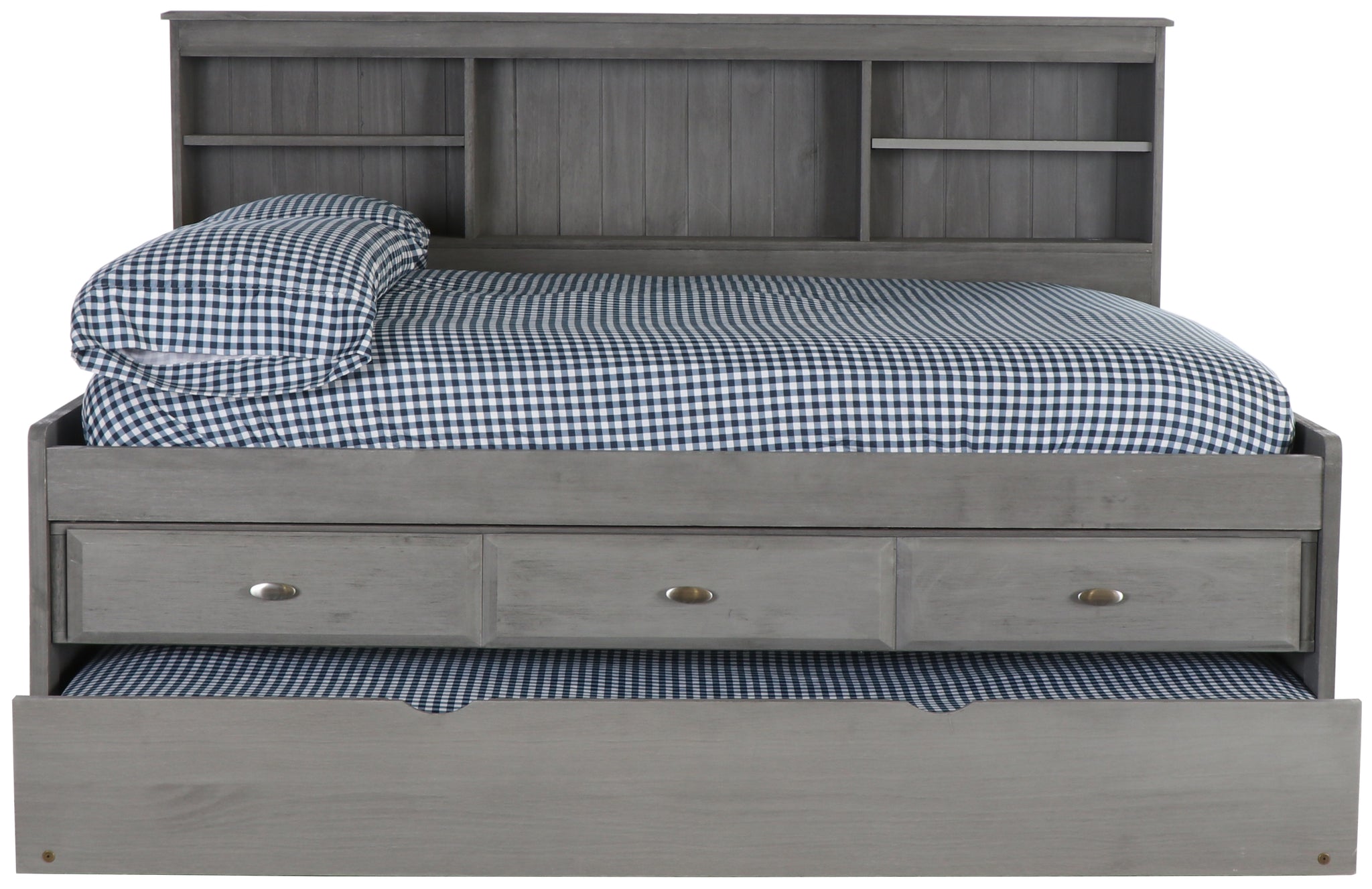 Add fashion and function to your child's bedroom with this full size bookcase daybed. With ample 3-drawer storage accessible from either end of the bed and slide out twin trundle, there is always room for a sibling or another guest! Offering options for a wide array of color choices, as well as the option to add a twin trundle underneath the bed, the possibilities are endless. The Blakely is the perfect bed for every stage of growing up, from toddler to adults!