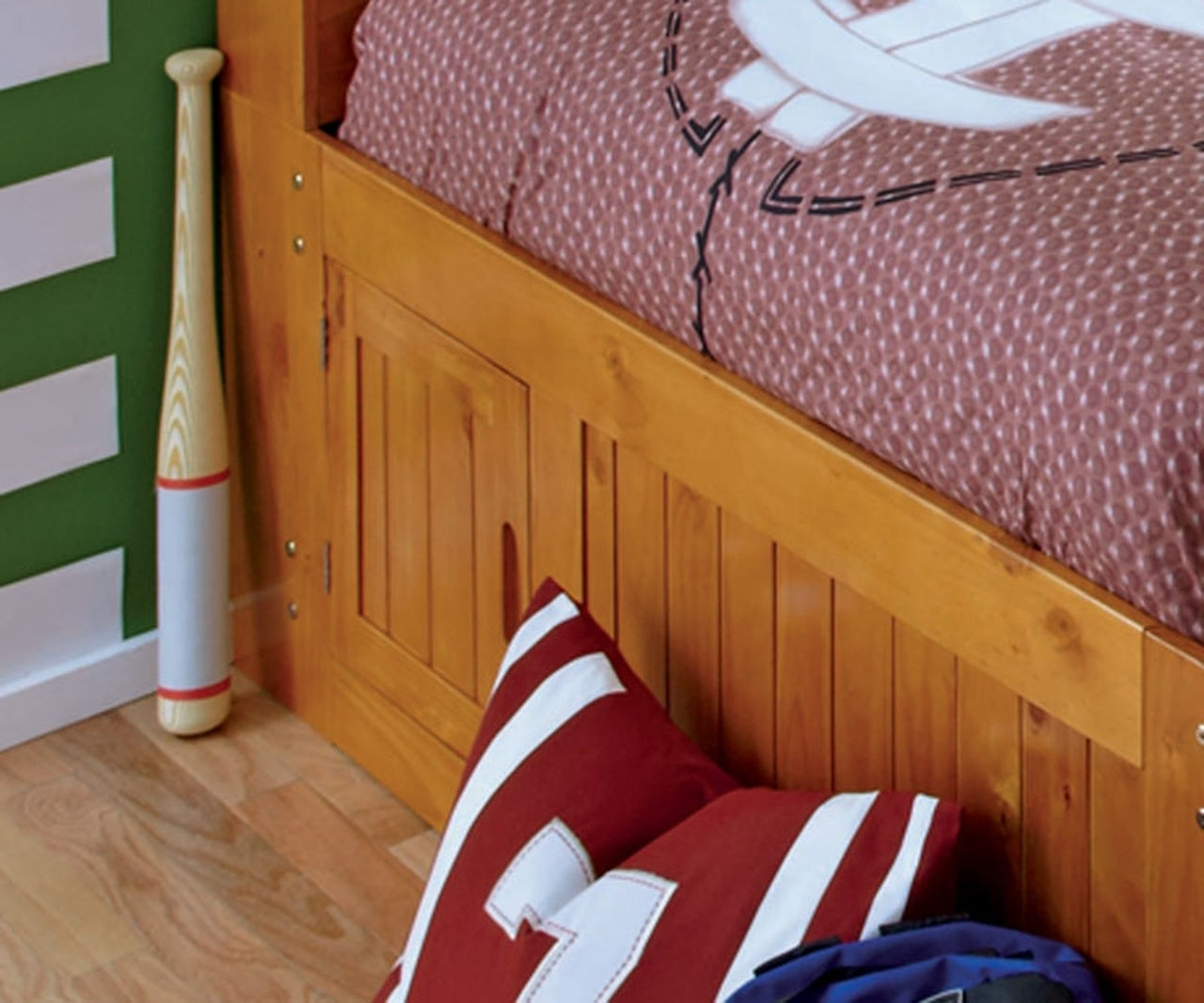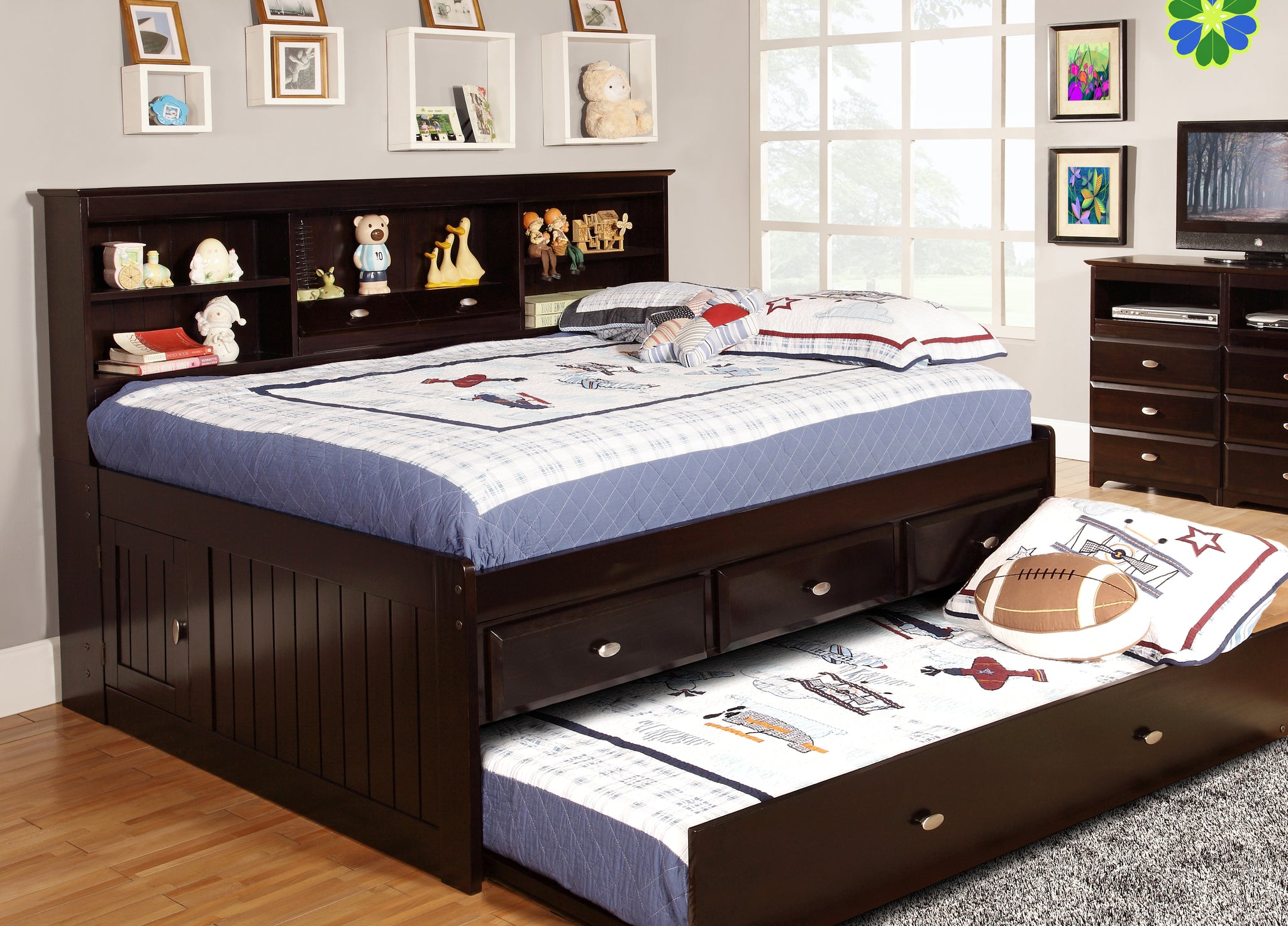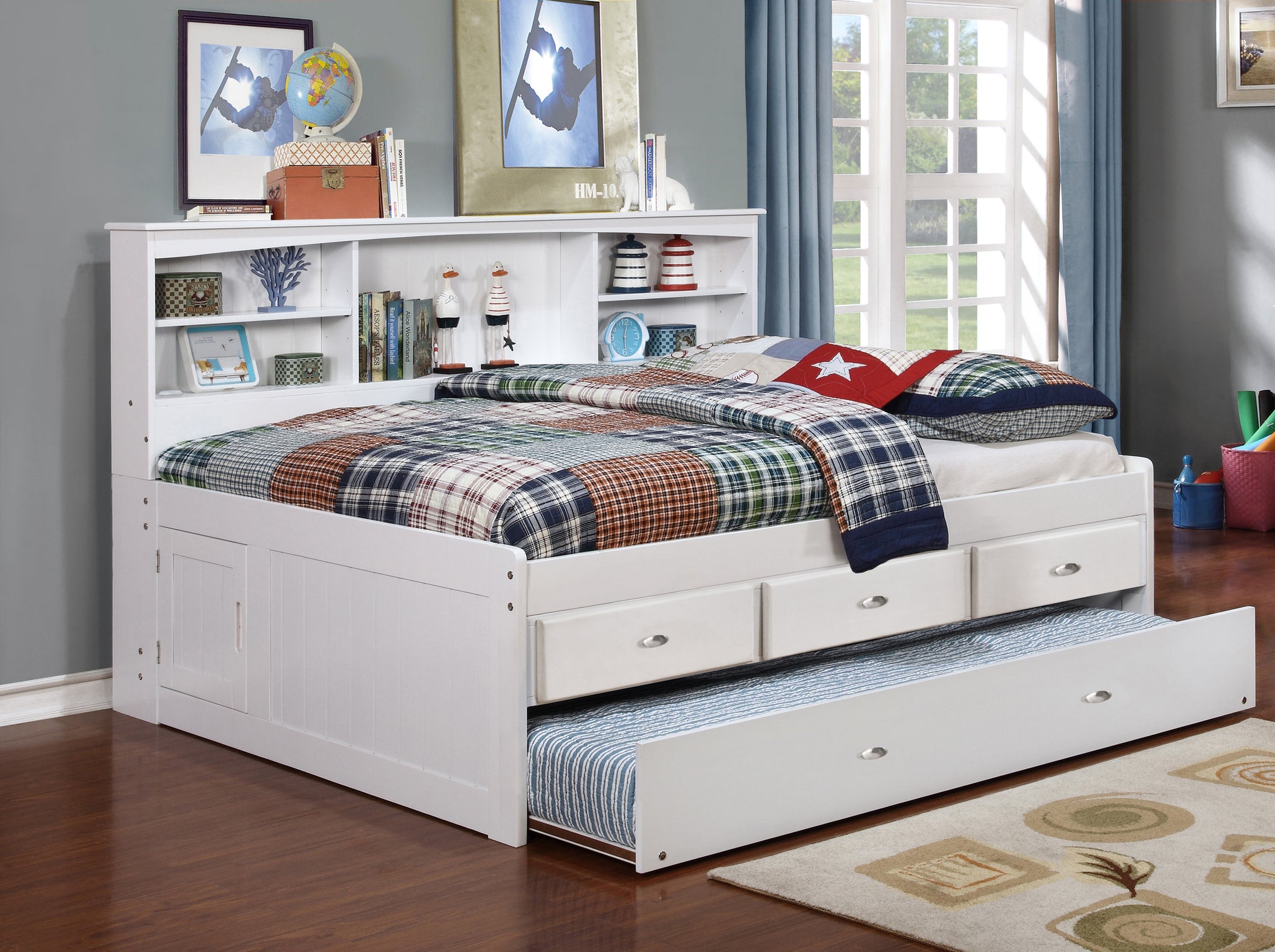 Add fashion and function to your child's bedroom with this full size bookcase daybed. With ample 3-drawer storage accessible from either end of the bed and slide out twin trundle, there is always room for a sibling or another guest! Offering options for a wide array of color choices, as well as the option to add a twin trundle underneath the bed, the possibilities are endless. The Blakely is the perfect bed for every stage of growing up, from toddler to adults!